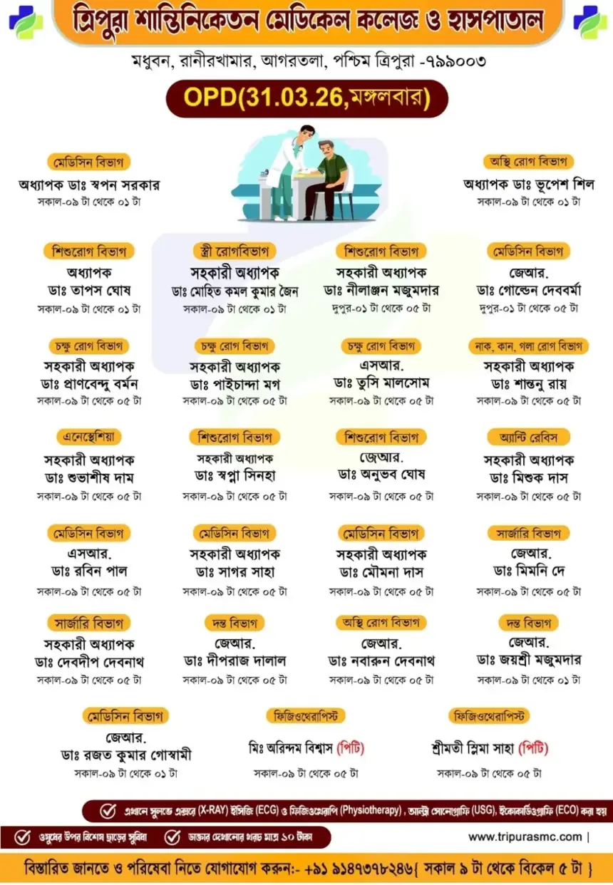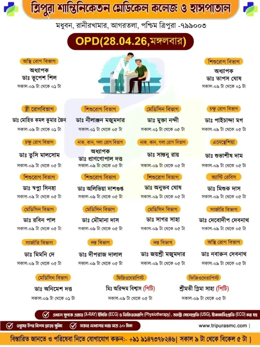 সাধারণ মানুষের কাছে সুলভ মূল্যে উন্নত চিকিৎসা পৌঁছে দিতে প্রতিশ্রুতিবদ্ধ ত্রিপুরা শান্তিনিকেতন মেডিকেল কলেজ ও হাসপাতাল।…