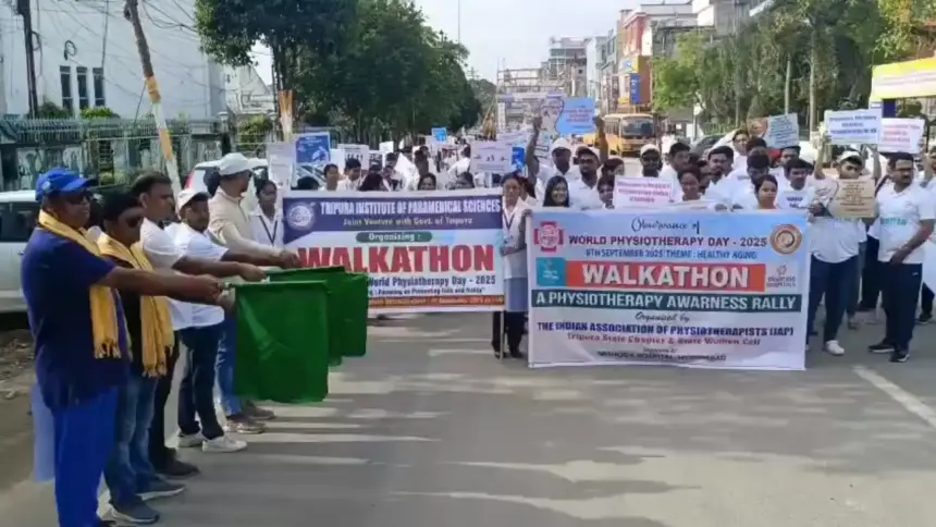 নিউজ ডেস্ক || বিশ্ব ফিজিওথেরাপি দিবস উপলক্ষে দা ইন্ডিয়ান এসোসিয়েশন অফ ফিজিওথেরাপিস্ট ত্রিপুরা শাখা এবং ত্রিপুরা ইনস্টিটিউট অফ প্যারামেডিকেল সাইন্সের যৌথ উদ্যোগে আগরতলায় একটি সচেতনতামূলক পদযাত্রা অনুষ্ঠিত হয়েছে। এই পদযাত্রার মূল লক্ষ্য ছিল সাধারণ মানুষের মধ্যে ফিজিওথেরাপির গুরুত্ব ও প্রয়োজনীয়তা সম্পর্কে সচেতনতা ছড়িয়ে দেওয়া।