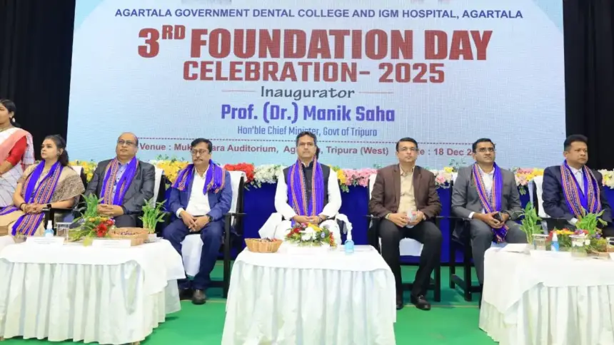 নিউজ ডেস্ক || ত্রিপুরার মুখ্যমন্ত্রী প্রফেসর (ডা.) মানিক সাহা আজ মুক্তধারা অডিটোরিয়ামে আগরতলা সরকারি ডেন্টাল কলেজের তৃতীয় প্রতিষ্ঠা দিবস অনুষ্ঠানের উদ্বোধন করেন। এই অনুষ্ঠানে তিনি কলেজের অগ্রগতি তুলে ধরে রাজ্যের স্বাস্থ্য ব্যবস্থার উন্নয়নের কথা বলেন। একই সঙ্গে পুরোনো আই.জি.এম. হাসপাতালের ভূমিকম্প প্রতিরোধী সংস্কার কাজের উদ্বোধন এবং নতুন ভবনের ভূমিপূজনও সম্পন্ন হয়।