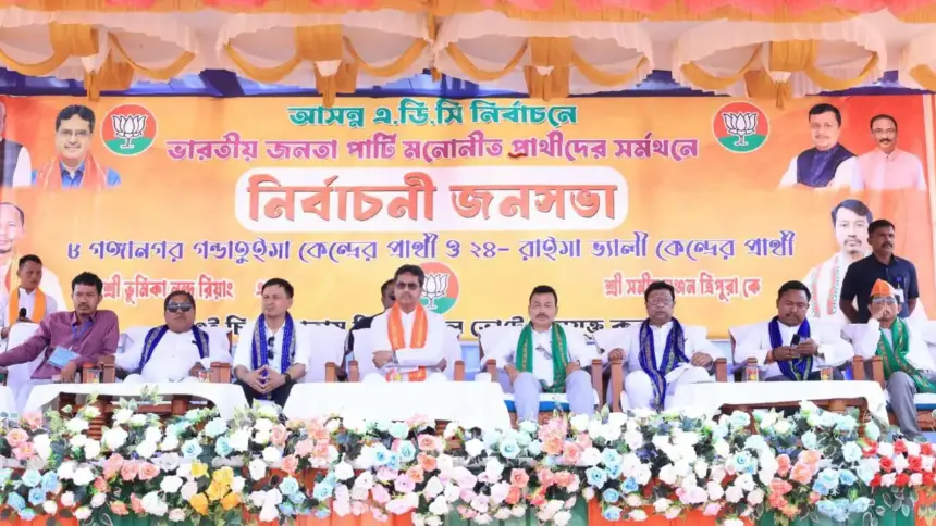 নিউজ ডেস্ক || আসন্ন ত্রিপুরা আদিবাসী অঞ্চল স্বশাসিত জেলা পরিষদ (এডিসি) নির্বাচনে ভারতীয় জনতা পার্টির (বিজেপি) প্রার্থীদের সমর্থনে মুখ্যমন্ত্রী প্রফেসর ডাঃ মানিক সাহা জনসভা করেছেন। তিনি বলেন, প্রধানমন্ত্রী নরেন্দ্র মোদীর নেতৃত্বে দেশ ও রাজ্য এগিয়ে চলেছে এবং এডিসির উন্নয়নের জন্যও বিজেপি সরকার অপরিহার্য।