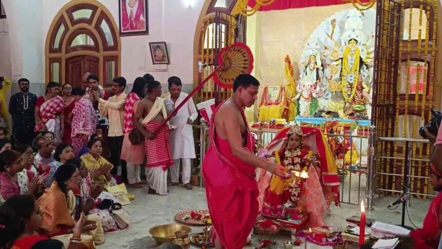 নিউজ ডেস্ক || বিগত বছরের ন্যায় এবছরও সমস্ত শাস্ত্রীয় বিধি মেনে আগরতলার আনন্দময়ী আশ্রমে অনুষ্ঠিত হয়েছে কুমারী পূজা। বাসন্তী পূজার দ্বিতীয় দিনে মহা অষ্টমী তিথিতে এই পুজোকে কেন্দ্র করে সকাল থেকেই মন্দিরে ভক্তদের উপচে পড়া ভিড় দেখা গেছে। এই পুজোর মাধ্যমে দেবী দুর্গার কুমারী রূপের আরাধনা করা হয়, যা পৌরাণিক কাহিনী ও আধ্যাত্মিক বিশ্বাসের গভীর সংযোগ বহন করে।