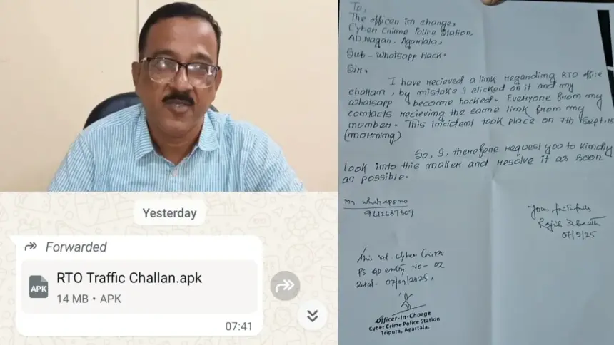 রাজীব দেবনাথ জানান, গত ৪ সেপ্টেম্বর তার মোবাইলে হোয়াটসঅ্যাপে একটি এপিকে (APK) ফাইল আসে। অজান্তে তিনি জানতেন না যে এটি একটি ক্ষতিকর ফাইল, যা সাইবার প্রতারক ও হ্যাকাররা প্রেরণ করে। ভুলবশত তিনি ফাইলটিতে ক্লিক করেন। এরপর ৭ সেপ্টেম্বর তার হোয়াটসঅ্যাপ হ্যাক হয়ে যায় এবং একটি বার্তা আসে যে তার হোয়াটসঅ্যাপ অন্য কোনো ফোনে ব্যবহৃত হচ্ছে।