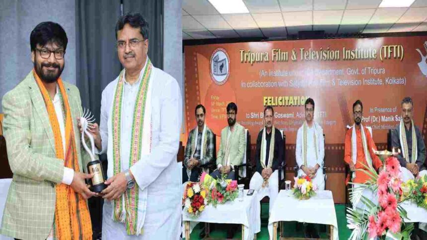 উল্লেখ্য, প্রখ্যাত চিত্রনাট্যকার বিপ্লব গোস্বামীকে সম্প্রতি রাজস্থানের জয়পুরে অনুষ্ঠিত ২৫তম ইন্টারন্যাশনাল ইন্ডিয়ান ফিল্ম অ্যাকাডেমি অ্যাওয়ার্ডস অনুষ্ঠানে ‘লাপাতা লেডিস’ হিন্দি ফিল্মের জন্য দ্য পপুলার ক্যাটাগরিতে বেস্ট স্টোরি (অরিজিন্যাল) পুরস্কারে ভূষিত করা হয়েছে। অনুষ্ঠানে বক্তব্য রাখতে গিয়ে তথ্য ও সংস্কৃতি দপ্তরের সচিব ড. পি কে চক্রবর্তী বলেন, ভবিষ্যতে টিএফটিআইতে ৬ মাসের সার্টিফিকেট ও ১ বছরের ডিপ্লোমা কোর্স চালু করার পরিকল্পনা রয়েছে। বক্তব্য রাখতে গিয়ে চিত্রনাট্যকার বিপ্লব গোস্বামী নিজের এই সফলতার জন্য রাজ্য ও রাজ্যবাসীকে ধন্যবাদ জানান। তিনি বলেন, আইফা অ্যাওয়ার্ড পাওয়া অত্যন্ত আনন্দের বিষয় ও এক বিরল অনুভূতি। আজকের এই অনুষ্ঠানে তাকে সংবর্ধনা দেওয়ার জন্য তিনি সংশ্লিষ্ট সকলকে ধন্যবাদ জানান। অনুষ্ঠানে অন্যান্যদের মধ্যে উপস্থিত ছিলেন সোসাইটি ফর ম্যানেজমেন্ট অব কালচার্যাল কমপ্লেক্স’র চেয়ারম্যান নবেন্দু ভট্ট াচার্য, রাজা সাংস্কৃতিক উপদেষ্টা কমিটির ভাইস চেয়ারম্যান সুব্রত চক্রবর্তী, তথ্য ও সংস্কৃতি দপ্তরের অধিকর্তা বিম্বিসার ভট্টাচার্য।