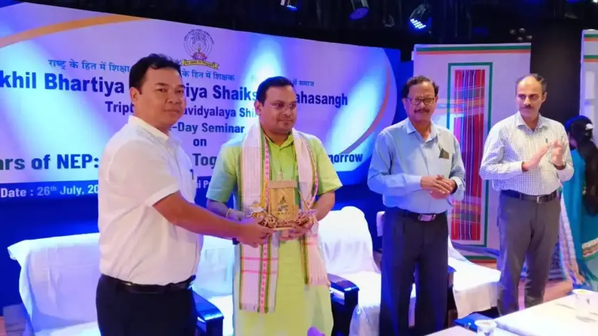 নিউজ ডেস্ক || জাতীয় শিক্ষানীতি দ্রুত ১০০ শতাংশ বাস্তবায়নের জন্য ছাত্র-ছাত্রী, শিক্ষক, শিক্ষাকর্মী ও সরকারের সম্মিলিত প্রচেষ্টার ওপর জোর দিয়েছেন উচ্চশিক্ষা মন্ত্রী কিশোর বর্মণ। আজ আগরতলার মহিলা মহাবিদ্যালয়ের মাতঙ্গিনী প্রীতিলতা হলে অখিল ভারতীয় রাষ্ট্রীয় শিক্ষা মহাসংঘের উদ্যোগে আয়োজিত একদিনের সেমিনারে তিনি এ কথা বলেন।