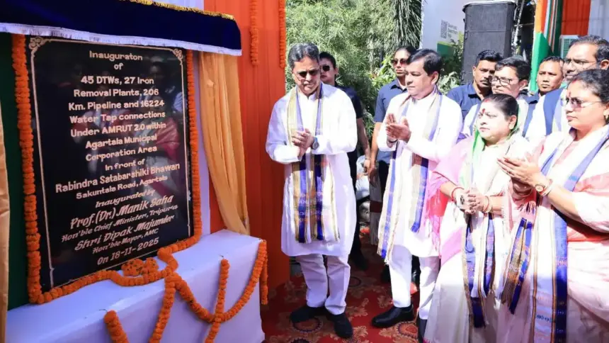 নিউজ ডেস্ক || প্রধানমন্ত্রী নরেন্দ্র মোদির উদ্যোগে চালু হওয়া জল জীবন মিশনের অংশ আমৃত ২.০ প্রকল্পের আওতায় ত্রিপুরায় ঘরে ঘরে বিশুদ্ধ পানীয়জল পৌঁছে দেওয়ার কাজ দ্রুতগতিতে এগোচ্ছে। সোমবার রবীন্দ্র শতবার্ষিকী ভবনে মুখ্যমন্ত্রী প্রফেসর (ডা.) মানিক সাহা আগরতলা পুরনিগম এলাকায় নির্মিত ৪৫টি ডিপ টিউবওয়েল ও ২৭টি আয়রন রিমুভাল প্ল্যান্টের উদ্বোধন করেন।