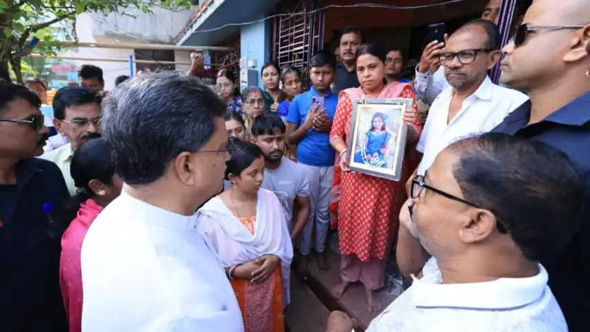 নিউজ ডেস্ক || ক্ষুদিরাম বসু ইংলিশ মিডিয়াম স্কুলের দ্বিতীয় শ্রেণির ছাত্রী দীপান্বিতা পালের অকাল মৃত্যুতে গভীর শোক প্রকাশ করেছেন ত্রিপুরার মুখ্যমন্ত্রী প্রফেসর ডাঃ মানিক সাহা। শুক্রবার তিনি নিহত শিশুর যোগেন্দ্রনগরস্থ বাসভবনে গিয়ে পরিবারের সদস্যদের প্রতি সমবেদনা জানান এবং ঘটনার পুঙ্খানুপুঙ্খ তদন্তের জন্য জেলাশাসক ও শিক্ষা অধিদপ্তরকে নির্দেশ দিয়েছেন।