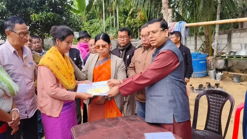 নিউজ ডেস্ক || ত্রিপুরার ঊনকোটি জেলার বাসিন্দা যুবক এঞ্জেল চাকমাকে উত্তরাখণ্ডে নির্মমভাবে হত্যার পর, ৩০ ডিসেম্বর মঙ্গলবার মন্ত্রী টিংকু রায়সহ প্রশাসনিক কর্মকর্তারা তার বাড়িতে গিয়ে পরিবারকে ক্ষতিপূরণের চেক প্রদান করেন। উত্তরাখণ্ড সরকারের পক্ষে ৪ লক্ষ ১২ হাজার ৫০০ টাকা এবং ত্রিপুরা সরকারের পক্ষে ৫ লক্ষ টাকা দেওয়া হয়।