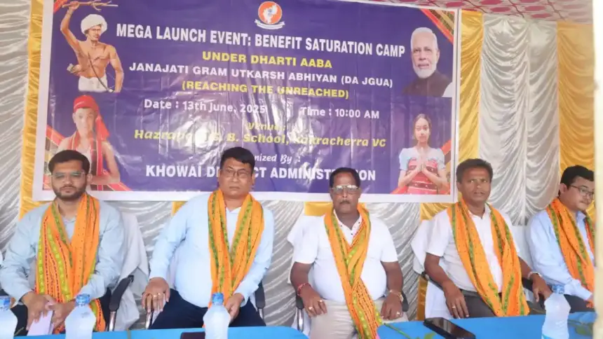 নিউজ ডেস্ক || খোয়াই জেলা প্রশাসনের উদ্যোগে তেলিয়ামুড়া মহকুমার মুঙ্গিয়াকামি আর.ডি. ব্লকের কাকড়াছড়া এডিসি ভিলেজের হাজরাপাড়া এস.বি. স্কুল প্রাঙ্গণে একটি বিশেষ বেনিফিট স্যাচুরেশন ক্যাম্প অনুষ্ঠিত হয়েছে। রাজ্য সরকারের গুরুত্বপূর্ণ প্রশাসনিক কর্মসূচি “ধরতি আবা জনজাতি গ্রাম উৎকর্ষ অভিযান”-এর অধীনে আয়োজিত এই শিবিরে জনজাতি সম্প্রদায়ের মানুষের জন্য সরকারি সুযোগ-সুবিধা নিশ্চিত করার লক্ষ্যে বিভিন্ন প্রয়োজনীয় নথি প্রদান করা হয়।