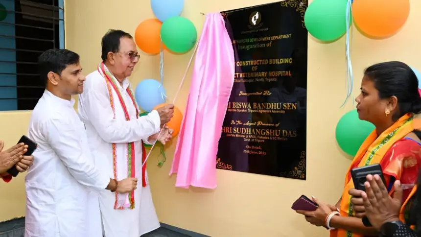 নিউজ ডেস্ক || ধর্মনগরে একটি নবনির্মিত জেলা ভেটেরিনারি হাসপাতাল ও মেডিসিন স্টোরের উদ্বোধন করা হয়েছে ২৫শে জুন, ২০২৫ তারিখে। প্রাণীসম্পদ বিকাশ মন্ত্রী সুধাংশু দাস বলেছেন, প্রাণীসম্পদ ও মৎস্য ক্ষেত্রগুলি অত্যন্ত লাভজনক, যেখানে স্থানীয়ভাবে উৎপাদিত মাছ, ডিম, দুধ এবং মাংসের চাহিদা রয়েছে। তিনি জোর দিয়ে বলেন, কৃষি-সম্পর্কিত ক্ষেত্রগুলিতে আত্মনির্ভরশীলতা এবং আয়ের পর্যাপ্ত সুযোগ রয়েছে, যা ব্যক্তিগত উদ্যোগ এবং সরকারি সহায়তায় অর্জন করা যেতে পারে।