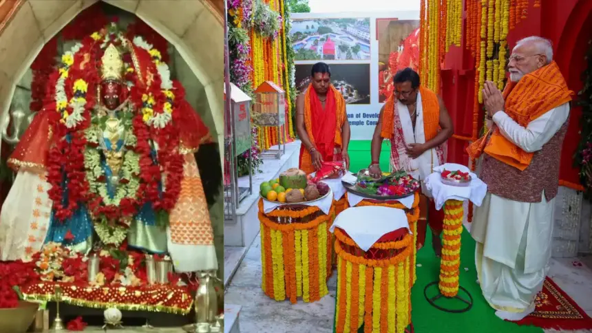 নিউজ ডেস্ক || আজ ত্রিপুরার বিখ্যাত মাতা ত্রিপুরেশ্বরী মন্দিরের নবরূপে উদ্বোধন উপলক্ষে রাজ্যে পদার্পণ করেন প্রধানমন্ত্রী নরেন্দ্র মোদি। মন্দিরে পৌঁছে তিনি মা ত্রিপুরেশ্বরীর কাছে ১০৮টি পদ্ম ফুলের মালা, সিল্কের শাড়ি, উদয়পুরের বিখ্যাত পেঁড়া এবং নানারকম ফল নিবেদন করে পুজো দেন। নিজের নাম ও গোত্র উল্লেখ করে তিনি দেশবাসীর মঙ্গল কামনা করেন।