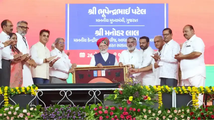 নিউজ ডেস্ক ।। প্রধানমন্ত্রী নরেন্দ্র মোদী আজ গুজরাটের ভুজে ৫৩,৪০০ কোটি টাকারও বেশি মূল্যের একাধিক উন্নয়নমূলক প্রকল্পের ভিত্তিপ্রস্তর স্থাপন, উদ্বোধন এবং জাতির উদ্দেশে উৎসর্গ করেছেন। এই প্রকল্পগুলির মধ্যে রয়েছে বিদ্যুৎ, বন্দর, সড়ক, জল এবং সৌরশক্তি সংক্রান্ত উদ্যোগ, যা কচ্ছকে বাণিজ্য, পর্যটন এবং সবুজ শক্তির ক্ষেত্রে বিশ্বের একটি শীর্ষ কেন্দ্র হিসেবে প্রতিষ্ঠিত করবে।