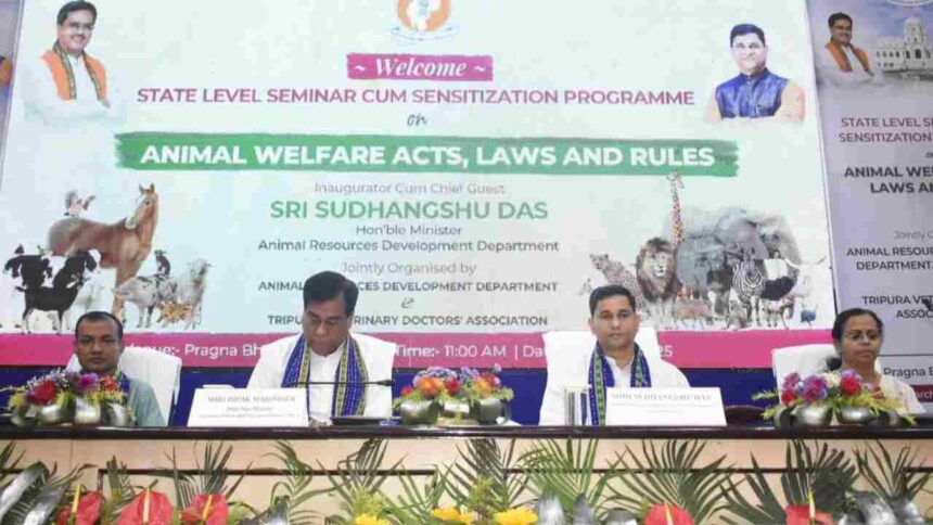 তিনি বলেন, প্রাণীদের কল্যাণে আইন করে সবকিছু করা সম্ভব নয়। এজন্য প্রাণীদের প্রতি চাই ভালবাসা, যত্ন ও সংবেদনশীলতা। প্রাণী সম্পদ বিকাশ দপ্তরের সচিব দীপা ডি নায়ার প্রাণীদের সুরক্ষার বিষয়ে আইনি বিষয়গুলি বিস্তারিত আলোচনা করেন এবং প্রাণী সুরক্ষায় সকলকে এগিয়ে আসার আহ্বান জানান। স্বাগত বক্তব্য রাখেন প্রাণীসম্পদ বিকাশ দপ্তরের অধিকর্তা ডা. এন কে চাকমা। উপস্থিত ছিলেন গোমতী জিলা পরিষদের সহকারি সভাধিপতি সুজন সেন, ত্রিপুরা ভেটেরিনারি ডক্টরস অ্যাসোসিয়েশনের সভাপতি ডা প্রিয়ব্রত নাথ, সাধারণ সম্পাদক ডা. সুজিত সাহা প্রমুখ। অনুষ্ঠানে প্রাণীসম্পদ বিকাশ দপ্তরের উন্নয়নমূলক কাজের ভিডিও শো প্রদর্শন করা হয়। উদ্বোধনী অনুষ্ঠানের পর টেকনিক্যাল সেশনে প্রাণী কল্যাণের আইন নিয়ে আলোচনা করেন পশ্চিমবঙ্গ ভেটেরিনারি এন্ড অ্যানিমেল হাজবেন্ডারি এক্সটেনশন এডুকেশন দপ্তরের অধ্যাপক ডা. অরুণাশীষ গোস্বামী, পশ্চিম জেলার জেলা বন আধিকারিক জয়াকৃষ্ণণ ভি কে এবং প্রাণীসম্পদ বিকাশ দপ্তরের আধিকারিক (লিগ্যাল) ডা. বিশ্বজিৎ দাস।