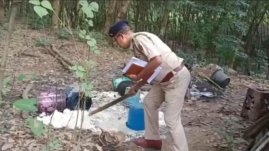 নিজস্ব প্রতিনিধি || বিশালগড় থানার পুলিশ বুধবার দুপুরে পূর্ব চাম্পামুড়া এলাকায় গৌরাঙ্গ শীল ও চন্দনা দেববর্মার বাড়িতে অভিযান চালিয়ে বিপুল পরিমাণ দেশি চুলাই মদ জব্দ করেছে। জানা গেছে, এই দুই বাড়িতে দীর্ঘদিন ধরে অবৈধভাবে চুলাই মদ তৈরি করে এলাকার যুব সমাজের হাতে তুলে দেওয়া হচ্ছিল, যা স্থানীয় পরিবেশ নষ্ট করছিল।বিশালগড় থানার ওসি বিজয় দাসের কাছে গোপন সূত্রে খবর পৌঁছানোর পর, তাঁর নির্দেশে সাব-ইন্সপেক্টর রামমোহন দেববর্মা এবং এসিস্টেন্ট সাব-ইন্সপেক্টর অরুণ দেববর্মার নেতৃত্বে পুলিশ ও টিএসআর বাহিনী যৌথ অভিযান চালায়। অভিযানে গৌরাঙ্গ শীল ও চন্দনা দেববর্মার বাড়ি থেকে মোট ১৭০ লিটার দেশি চুলাই মদ, মদ তৈরিতে ব্যবহৃত পচা ভাত এবং বিভিন্ন সরঞ্জাম জব্দ করা হয়। পুলিশ ঘটনাস্থলে মদ তৈরির সরঞ্জাম ভেঙে গুঁড়িয়ে দেয়।