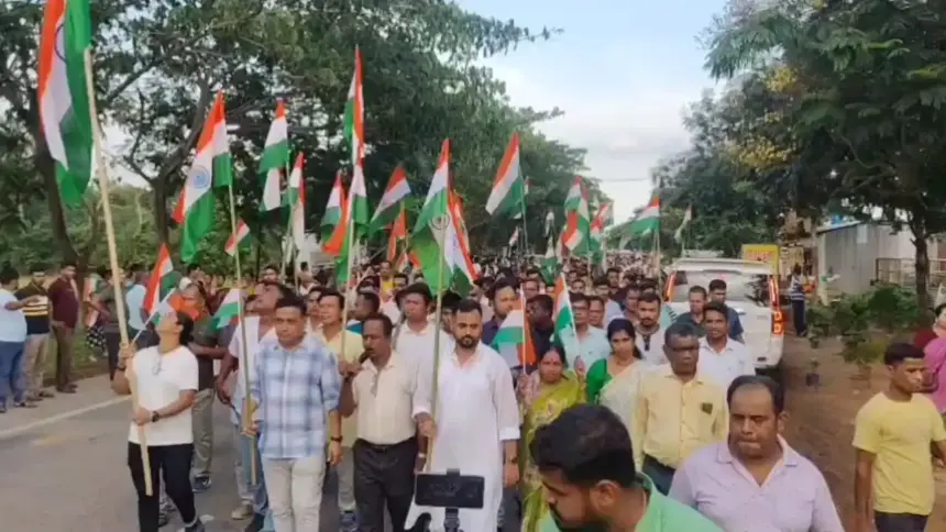 নিউজ ডেস্ক || শুক্রবার বিকালে ত্রিপুরার সিপাহীজলা জেলার চড়িলাম বাজার ও টাকারজলা লাম্পরা হাঁটিতে ভারতীয় সেনাবাহিনীর সাহসিকতা ও বীরত্বের প্রতি শ্রদ্ধা জানিয়ে এক বিশাল তিরঙ্গা র‍্যালির আয়োজন করা হয়। ভারতীয় জনতা পার্টির (বিজেপি) উদ্যোগে আয়োজিত এই কর্মসূচিতে দলমত নির্বিশেষে প্রায় তিন সহস্রাধিক নারী-পুরুষ অংশগ্রহণ করেন, যা সাম্প্রতিক কালে এই অঞ্চলে বিরল জনসমাগম হিসেবে চিহ্নিত হয়েছে।