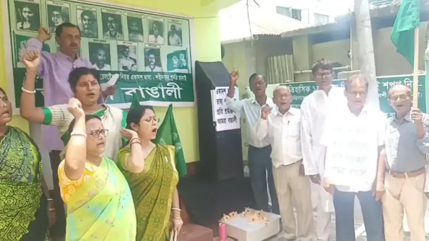 নিউজ ডেস্ক || আজ ১৯ মে, বাংলা ভাষা শহিদ দিবস। ১৯৬১ সালের এই দিনে আসামের শিলচরে বাংলা ভাষাকে সরকারি ভাষার মর্যাদা দেওয়ার দাবিতে আন্দোলনরত ১১ জন বাঙালি প্রাণ উৎসর্গ করেছিলেন। এই ঐতিহাসিক দিনটির স্মরণে আগরতলায় ‘আমরা বাঙালি’ দলের শিবনগর রাজ্য কার্যালয়ে এক শ্রদ্ধাঞ্জলি অনুষ্ঠানের আয়োজন করা হয়। দলের নেতা-কর্মীরা ভাষা শহিদদের প্রতি পুষ্পার্ঘ অর্পণ করে তাঁদের অমর ত্যাগের প্রতি শ্রদ্ধা জানান।