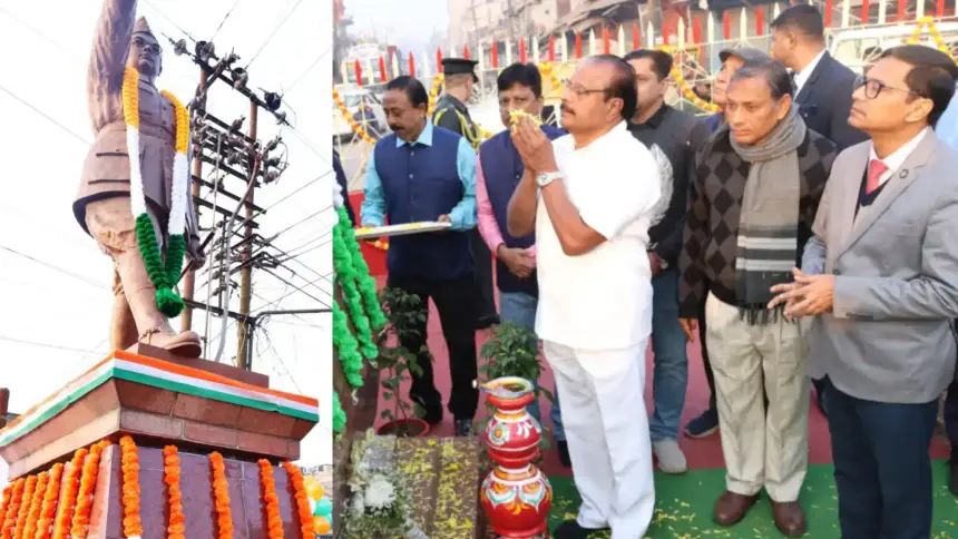 নিউজ ডেস্ক || ত্রিপুরার মহারাজগঞ্জ বাজারে নেতাজী সুভাষ চন্দ্র বসুর ১২৯তম জন্মদিবস উপলক্ষে এক শ্রদ্ধাঞ্জাপন অনুষ্ঠানের আয়োজন করা হয়। রাজ্যপাল ইন্দ্রসেনা রেড্ডি নাল্লু নেতাজীর মূর্তিতে পুষ্পার্ঘ্য অর্পণ করে শ্রদ্ধা জানান।