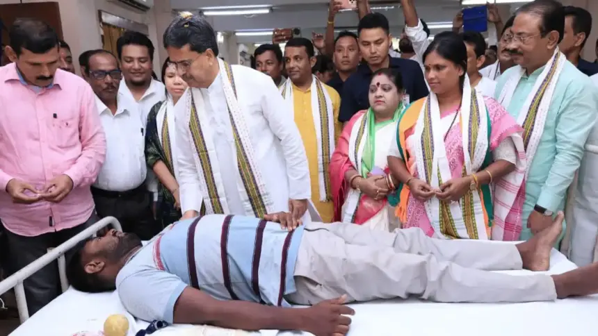 online news tripura > Blog > রাজ্য > মানবিকতার মুখ মুখ্যমন্ত্রী: রক্তদান শিবিরে অসুস্থ যুবকের পাশে ডা. মানিক সাহা