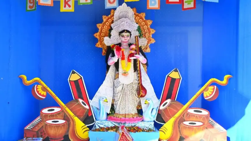 পুজোর আয়োজনে হলুদ বসনে সজ্জিত শিক্ষার্থীরা দেবীর প্রতিমায় মন্ত্রোচ্চারণ, পুষ্পার্ঘ্য ও অঞ্জলি প্রদান করেন। লেখাপড়ার সামগ্রী যেমন বই, খাতা ও কলম দেবীর চরণে অর্পণ করে বিদ্যা ও জ্ঞানের আশীর্বাদ কামনা করা হয়। বিভিন্ন স্কুলে সাংস্কৃতিক অনুষ্ঠান, সংগীত, আবৃত্তি ও নৃত্যের আয়োজন হয়েছে, যা পরিবেশকে আরও প্রাণবন্ত করে তুলেছে।