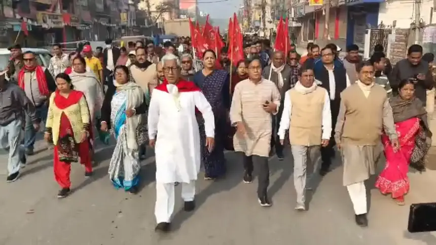 নিউজ ডেস্ক || সর্বভারতীয় বামপন্থী ট্রেড ইউনিয়নগুলির ডাকা ‘ভারত বন্ধ’-এর সমর্থনে বৃহস্পতিবার আগরতলায় সক্রিয় পিকেটিং করল সিপিআইএম-সহ অন্যান্য বাম সংগঠন। এতে অংশ নেন প্রাক্তন মুখ্যমন্ত্রী মানিক সরকার ও বিরোধী দলনেতা জিতেন্দ্র চৌধুরী।