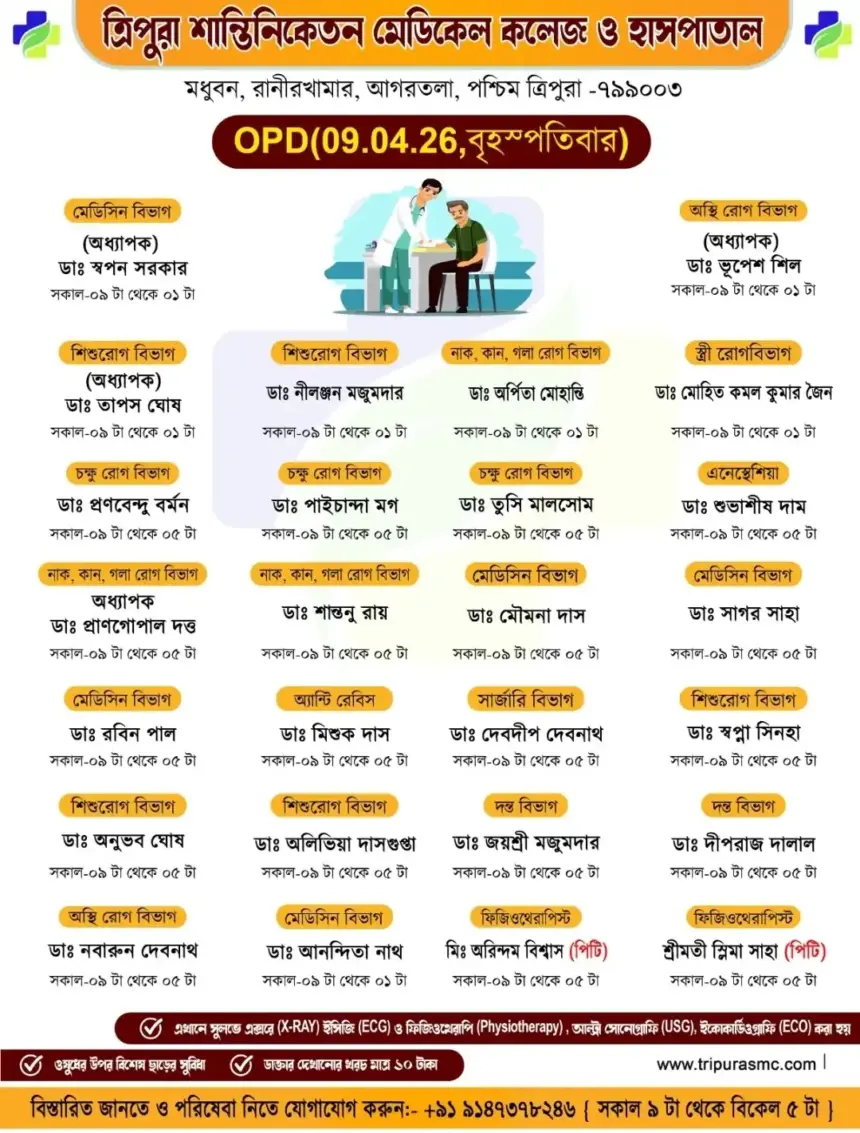 সাধারণ মানুষের কাছে সুলভ মূল্যে উন্নত চিকিৎসা পৌঁছে দিতে প্রতিশ্রুতিবদ্ধ ত্রিপুরা শান্তিনিকেতন মেডিকেল কলেজ ও হাসপাতাল।