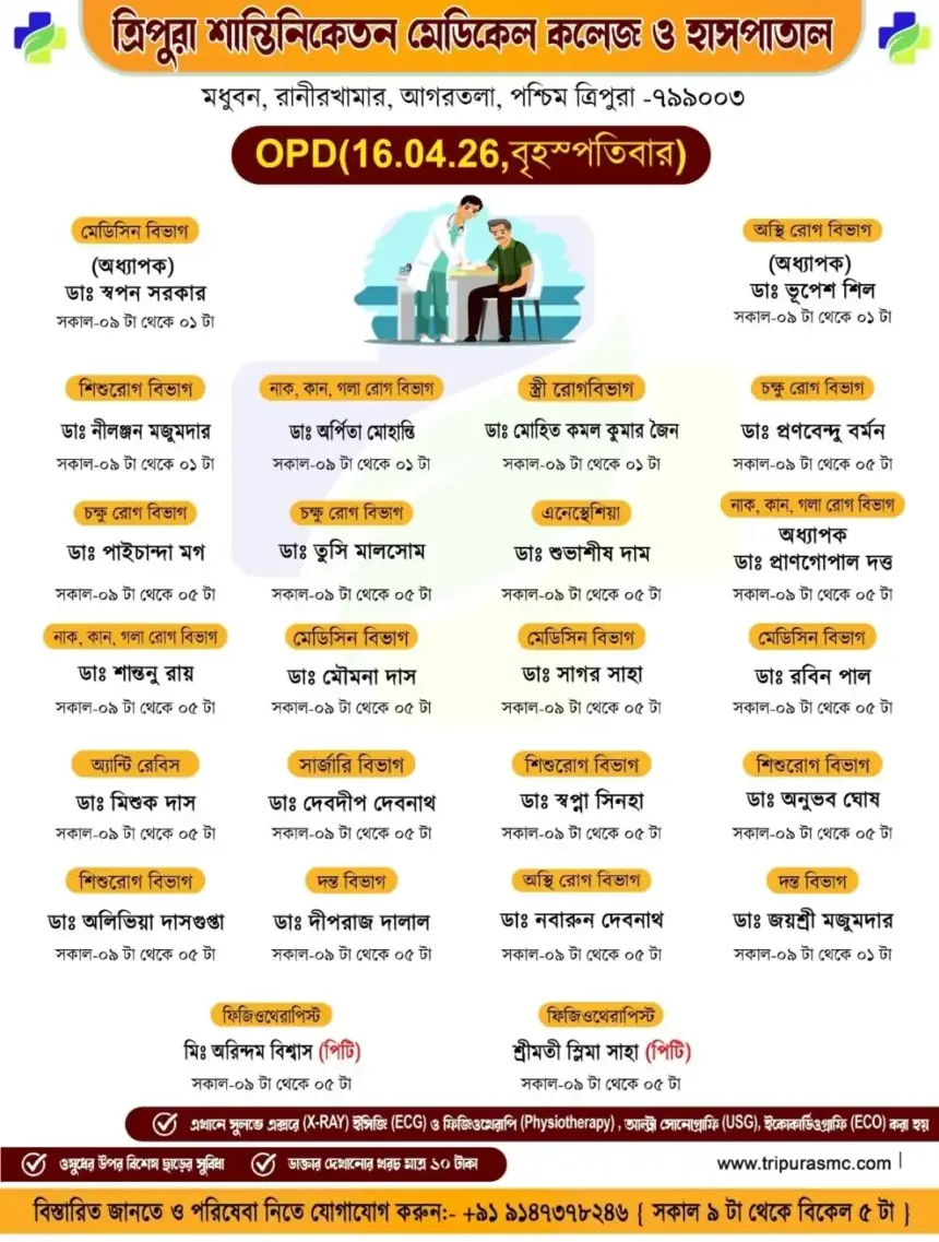 Reading: সাধারণ মানুষের কাছে সুলভ মূল্যে উন্নত চিকিৎসা পৌঁছে দিতে প্রতিশ্রুতিবদ্ধ ত্রিপুরা শান্তিনিকেতন মেডিকেল কলেজ ও হাসপাতাল।