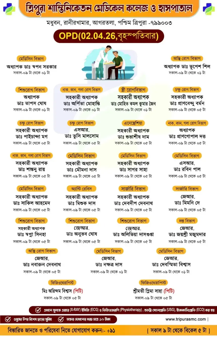 সাধারণ মানুষের কাছে সুলভ মূল্যে উন্নত চিকিৎসা পৌঁছে দিতে প্রতিশ্রুতিবদ্ধ ত্রিপুরা শান্তিনিকেতন মেডিকেল কলেজ ও হাসপাতাল।
