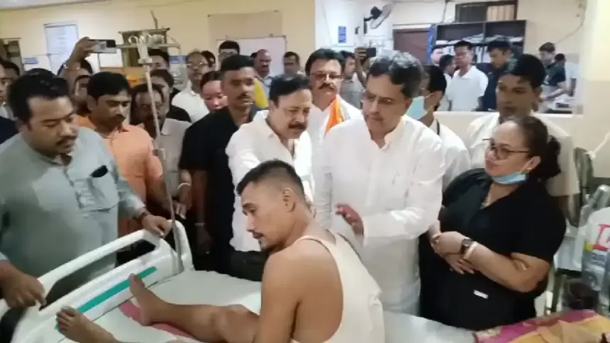 নিউজ ডেস্ক || ত্রিপুরার হেজামারায় শারদোৎসব উপলক্ষে বস্ত্র বিতরণ অনুষ্ঠানে বিজেপি কর্মী ও সাংবাদিকদের উপর হামলার ঘটনায় তীব্র নিন্দা জানিয়েছেন মুখ্যমন্ত্রী অধ্যাপক (ডাঃ) মানিক সাহা। এই ঘটনায় জড়িতদের কাউকে ছাড়া হবে না বলে হুঁশিয়ারি দিয়েছেন তিনি। আইন অনুযায়ী কঠোর শাস্তির ব্যবস্থা করা হবে বলেও জানিয়েছেন মুখ্যমন্ত্রী। মঙ্গলবার জিবি হাসপাতালে আহতদের শারীরিক অবস্থার খোঁজ নিতে গিয়ে তিনি এ কথা বলেন।