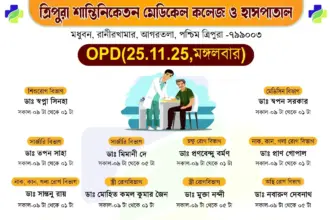 সাধারণ মানুষকে সুলভে সুচিকিৎসা পৌঁছে দিতে প্রতিশ্রুতিবদ্ধ ত্রিপুরা শান্তিনিকেতন মেডিকেল কলেজ ও হাসপাতাল। আগামীকাল অর্থাৎ মঙ্গলবার (২৫/১১/২০২৫) ১০টাকার বহির্বিভাগে (OPD)…